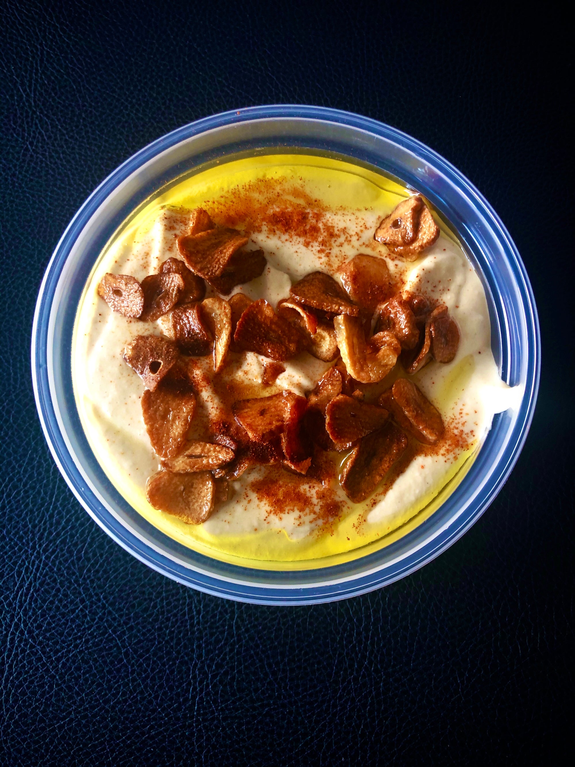 Une extravagance d'ail pur. Baba Hummus avec ail et huile d'olive extra vierge. 8oz.